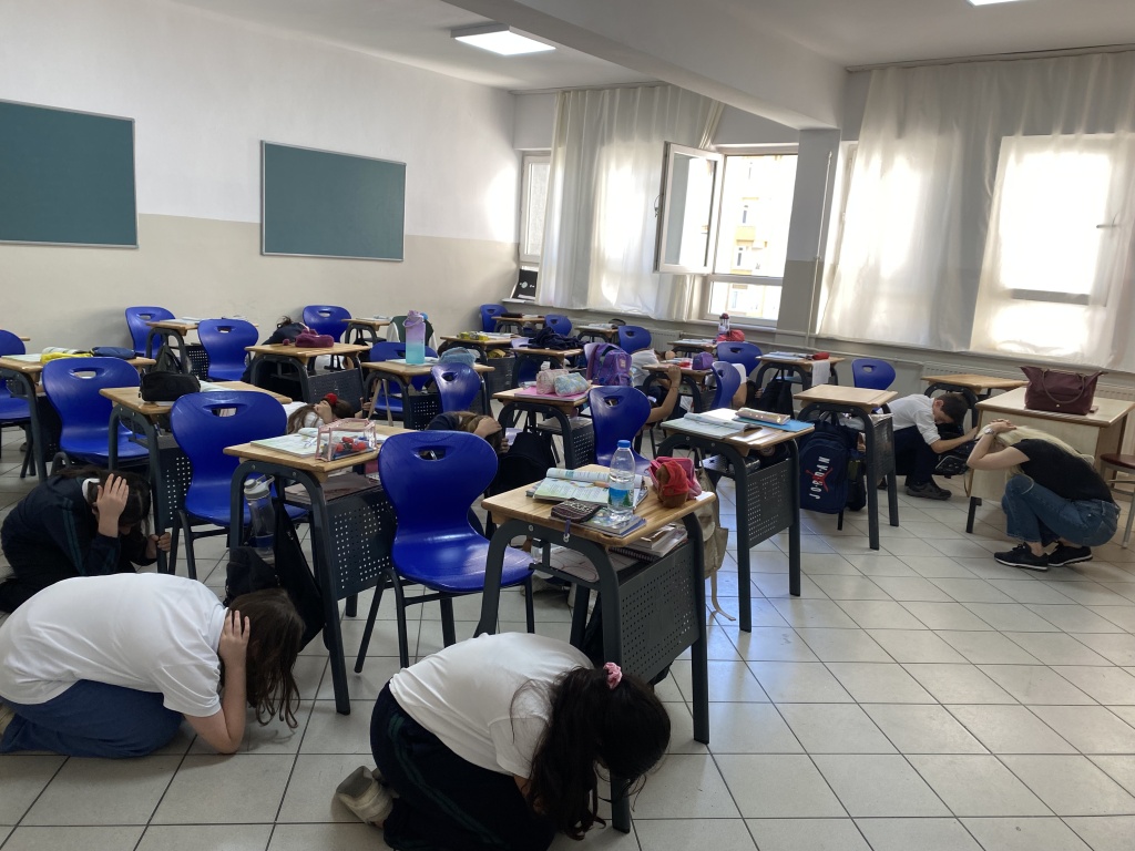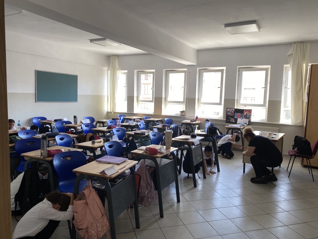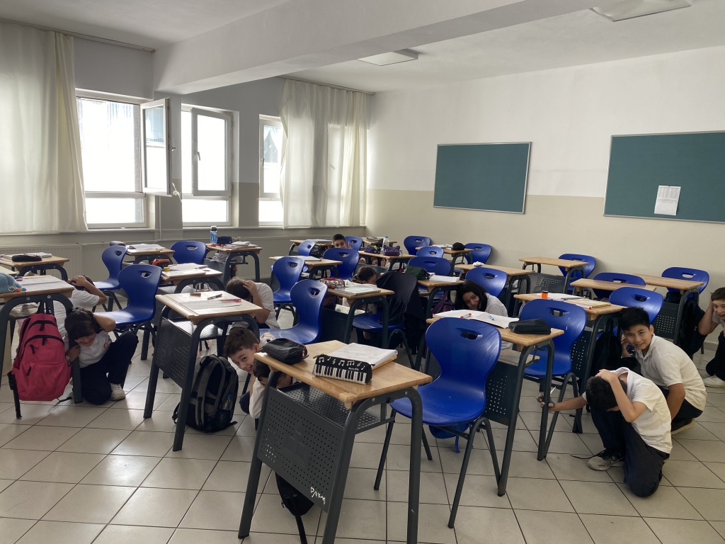 Öğrencilerimize "Afet Farkındalık Eğitimi" verilerek, okulumuzda deprem tatbikatı gerçekleştirildi.